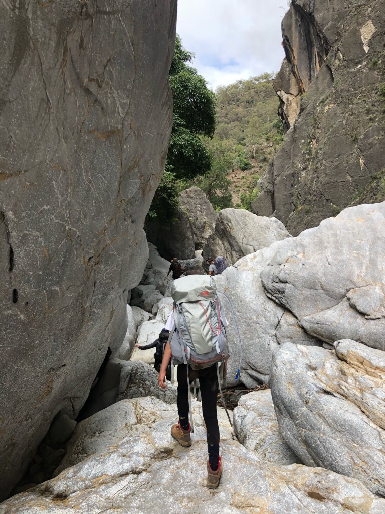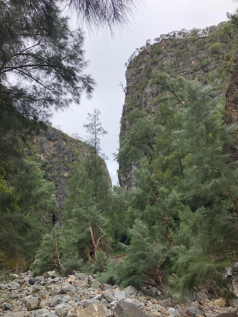 Ok, this is a walk so good I had to do it again with the kids after doing it a few weeks ago with my missus. The hike starts in the Bungonia National Park car park (don’t forget to pay for parking!) where there are a number of trails and caves to explore. For this overnight adventure, we took the Red Route down – it’s considered a Grade 5, (hard going), but I found it just steep and a bit slippy (as it had been raining). Besides the climb down being steep in places, the most technical part (and most fun!) is navigating the boulder field down in Slot Canyon (which can flood after rain so check the National Park website for the latest). It is epic fun and so wide / long that it’s unlikely you’ll take the same path twice. I used a rope to assist with bag lowering first time I was here, but this time found a slightly easier route which was easy enough to navigate without. The kids loved it (note, not suitable for young kids due to risk of slipping off). The walk then continues until you get to the Colo river and a very pleasant camping area with some makeshift logs to sit at around the fire. The water is good for swimming too. The next day you take the White route up, which besides just being bloody steep and long, is very manageable. There’s even a bench at the end overlooking the river and campsite. This is one of my favourites.