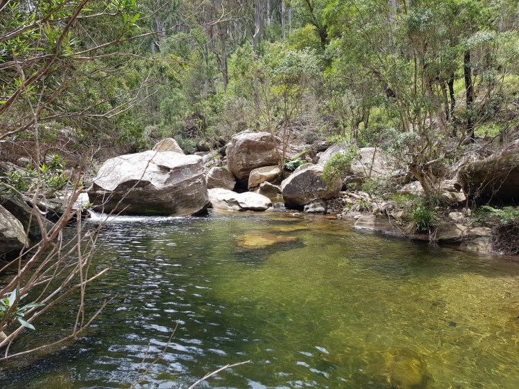 I did this one with my bro. This walk can be broken into 3 parts. The first is the walk to Lockley’s Pylon and the dirt road leading to the start of that track. It’s a long dirt road but fine for a 2wd if you take it slow. The track to Lockley’s Pylon is flat and not too long (1 hour-ish) – apparently it’s a popular day trip. The second part is the steep decent from Lockley’s down into the Blue Bum Forest and Acacia Flat campsite. The walk down is fairly steep, but nothing too technical besides a small jump down a wall (no ropes needed). You pass a sort of magical mini tropical forest half way down which is pretty amazing given the landscape. Once on the valley floor the walk to Acacia Flat can take another 2 hours – it’s an amazing walk as the density of Blue Gum trees increases … it reminds me of New York and looking up all the time at the skyscrapers! Acacia Flat campground (bookings are required) is serene, a great place to camp for the night (we were alone there, so a bit eerie). The final part of the hike is from Acacia Flat to (and up a very steep) Pierces Pass. There is an amazing pool as you approach Pierces Pass, just great for a swim before the gruelling climb up Pierces Pass. This is a moderate hike with very rewarding views, I will definitely do it again.