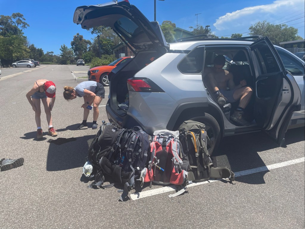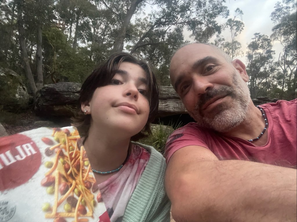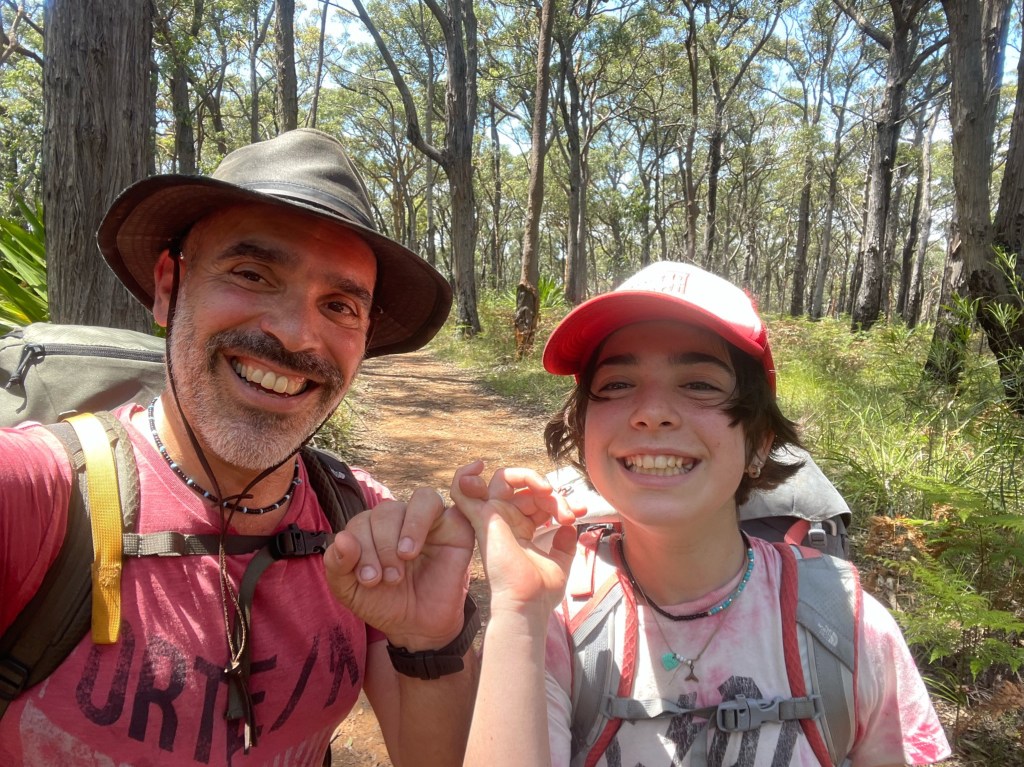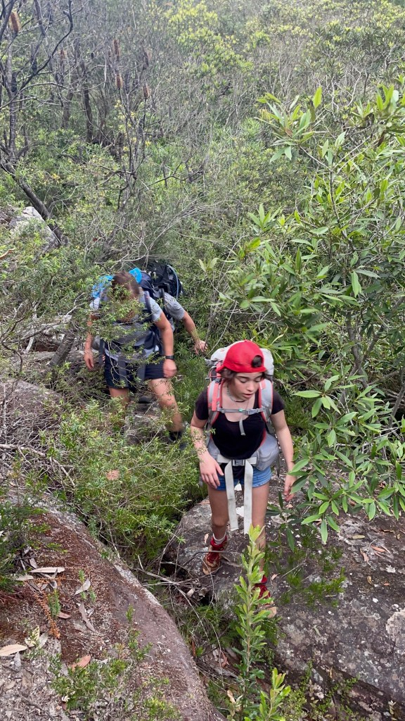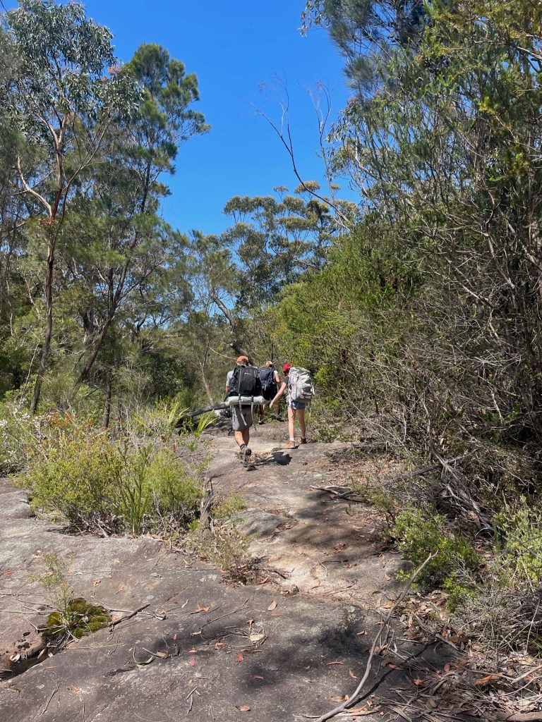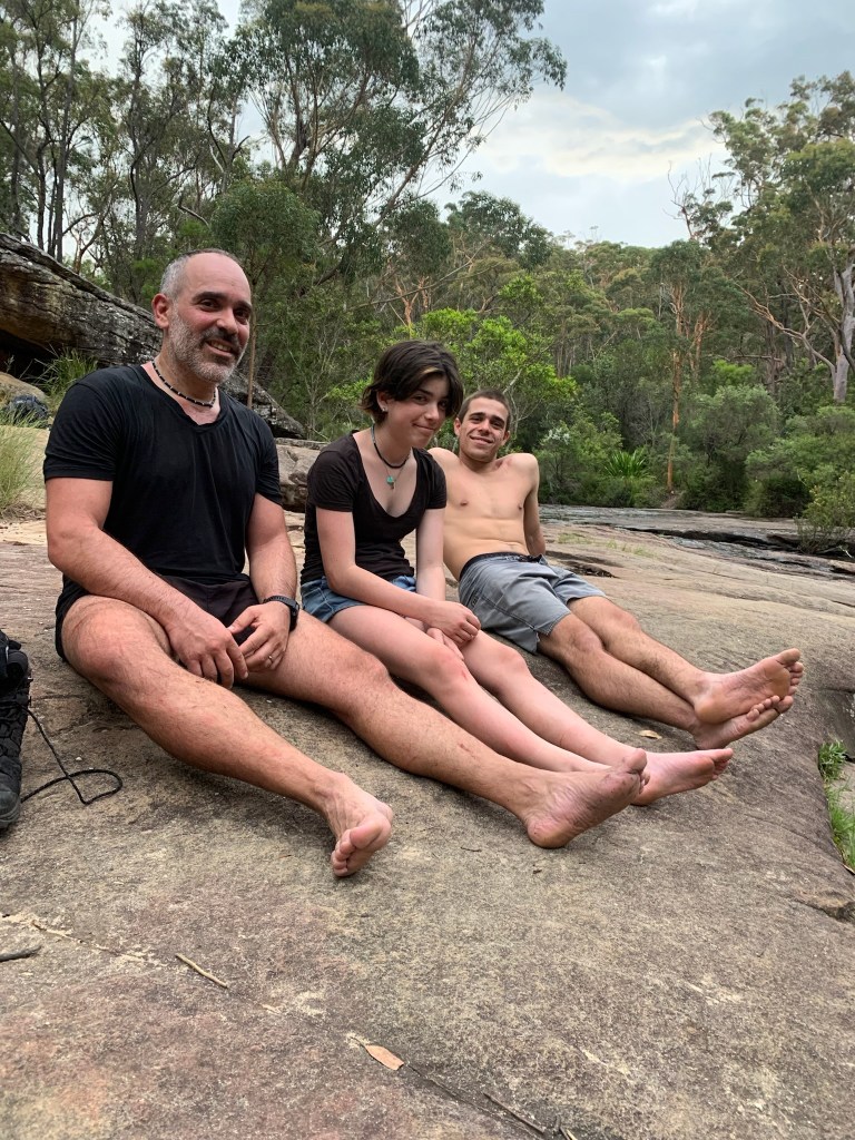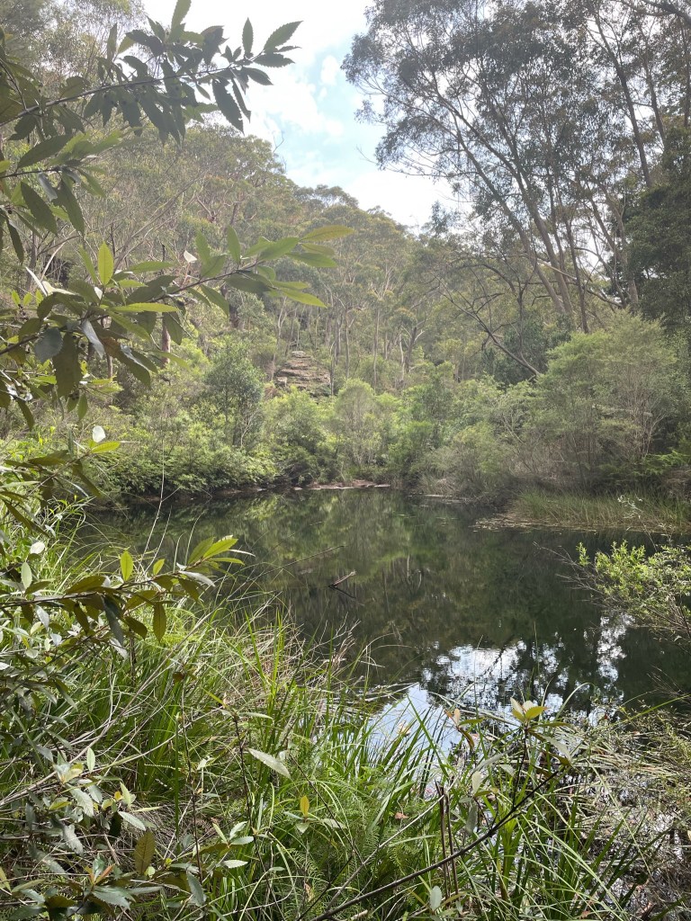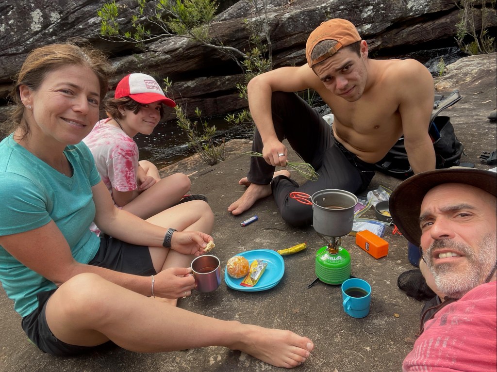 With 29 degree sunshine forecast for Day 1 and storms for Day 2, I decided we should shake it up and walk to Uloola via Kangaroo Creek track (I heard of many great swim spots along the way) and then back on Day 2 via the easier graded Uloola Track (the recommended route there). Not much went to plan from there! Day 1 (Xmas Day) started from Waterfall train station 2 hours later than planned (at 2pm!). Instead of Uloola Track, we walked on the far less trodden Kangaroo Creek Track. It starts easily enough and after an hour you get to the magnificent Kangaroo Pool – a beautiful swim spot with a waterfall and jump spot. The kids loved it. Between the hour spent here and 2pm start, we only had 3 hours of daylight left to walk 5km’s to Uloola camp site (via Karloo pools). But, we seriously underestimated how overgrown the bush was, often having to backtrack and course correct. By 7pm, it became clear we wouldn’t be reaching Uloola as we muddled and bush bashed through thick bush, finally to arrive to an empty Karloo pools at 7.30pm. We set up camp here instead. Day 2 (Boxing Day) we decided should be easier given the crazy rush in Day 1. So we hiked a kilometre or so to the massive (and empty) Olympic Pool, which is spectacular. From there we took the Bottle Forest Track up to Heathcote, which involved an hour or so of steep gradient ascent. All in all, an amazing hike and would definitely suggest all day is needed to fully enjoy and explore Kangaroo Creek allowing for enough time to work through the overgrown bush.