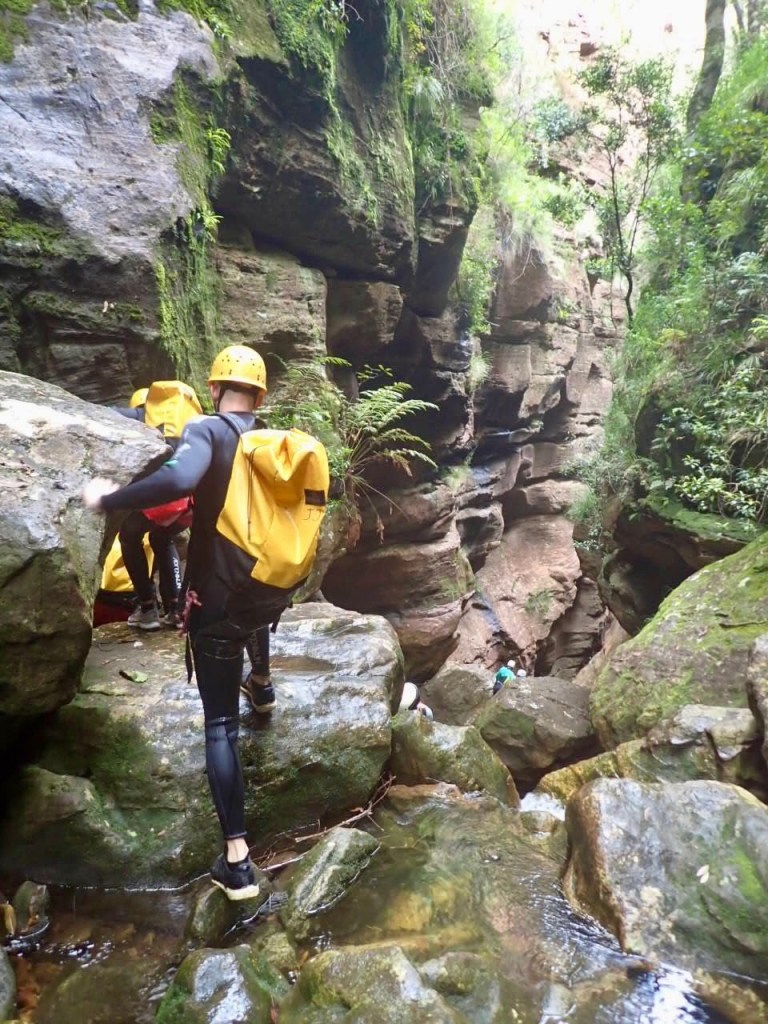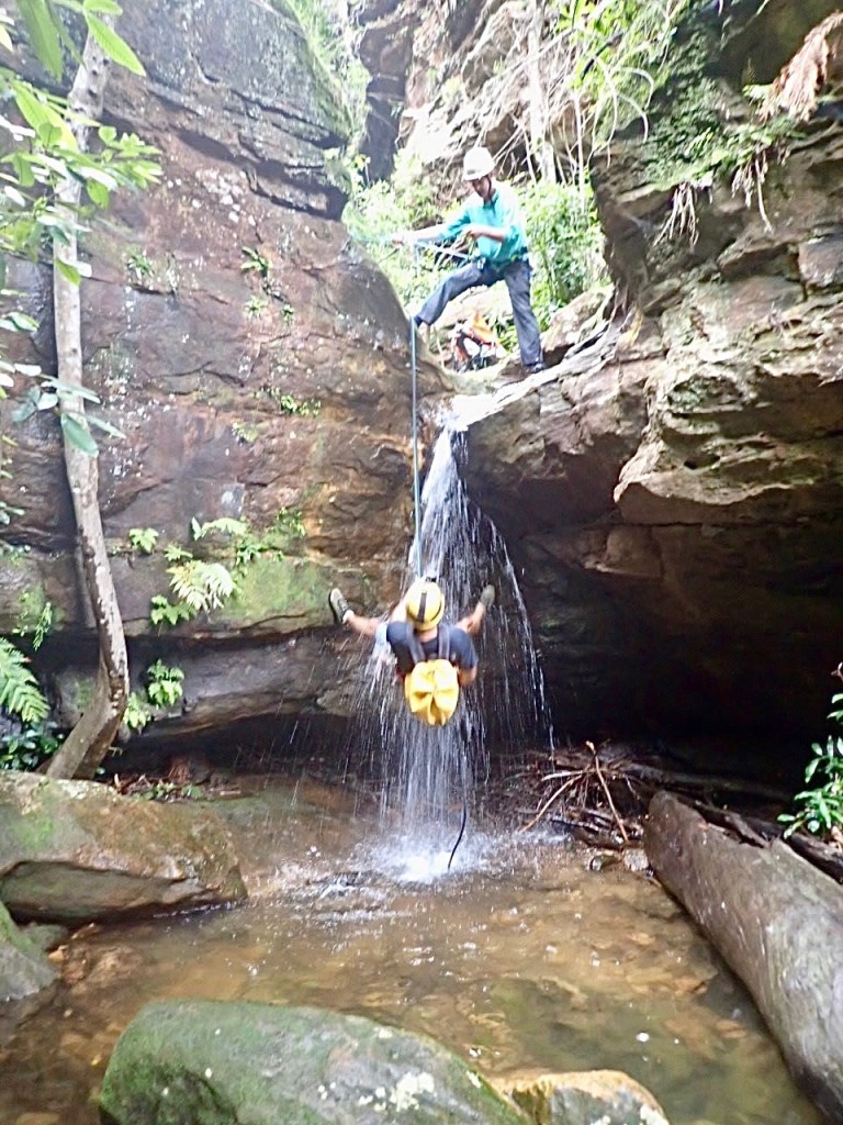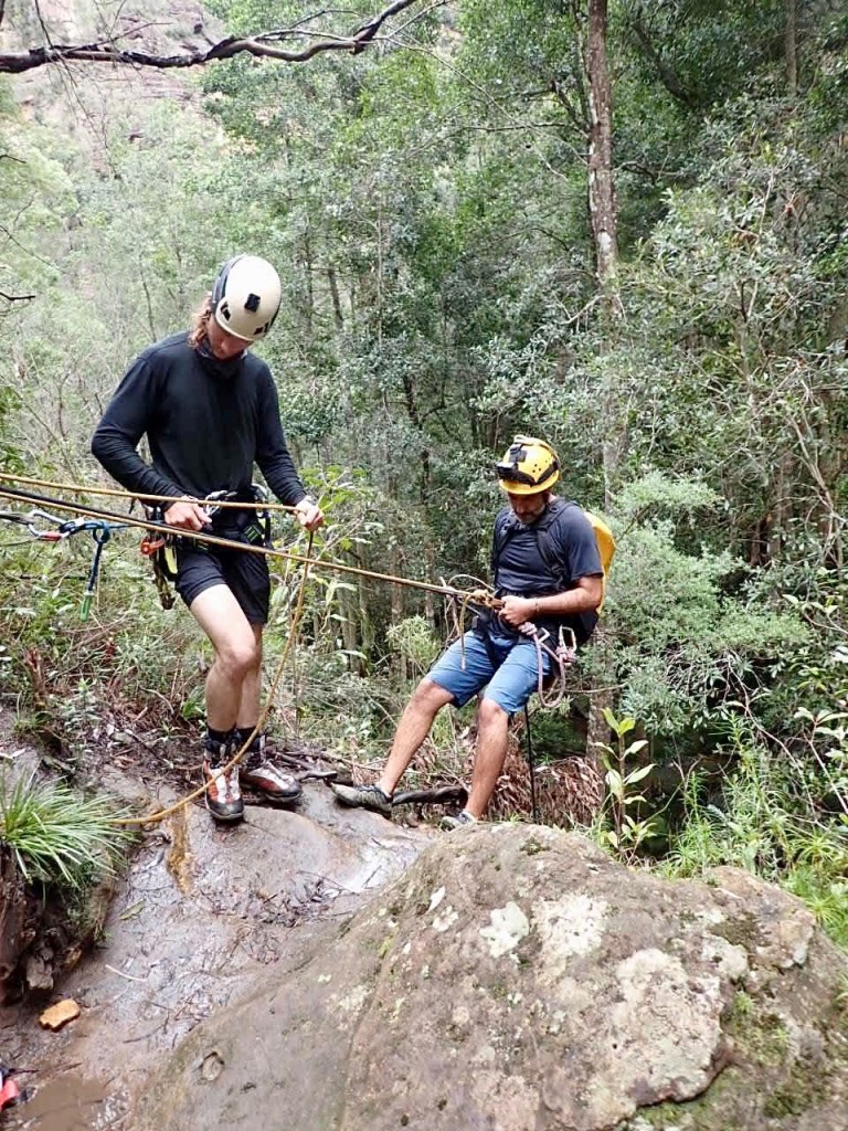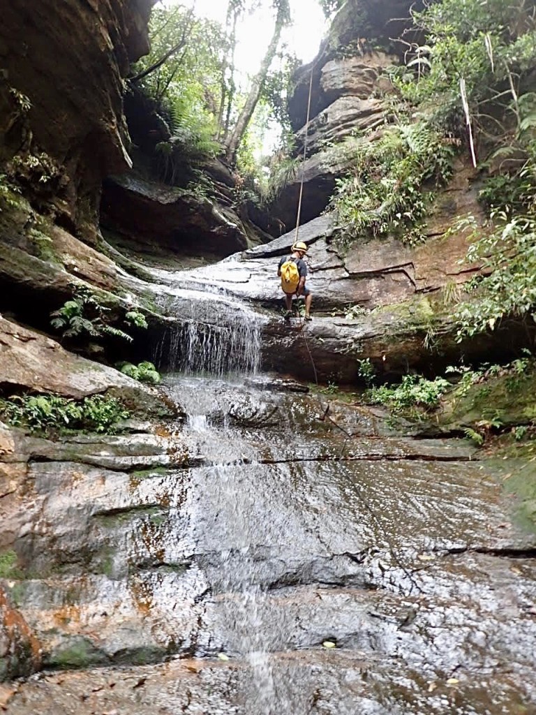 We woke up at 5.30am to meet our guides at Katoomba at 7am. They geared us up and drove us to the start of the trail. The abseiling commences pretty quickly, just 30 minutes into the hike. And from that point WOW. This is a canyon that just keeps on giving. At least 6 abseils of which one was too long for a single rope, meaning you have to land on a boulder, wedged between the narrow canyon walls, to rope up to a second rope. Many of them are through waterfalls. Just amazing.
