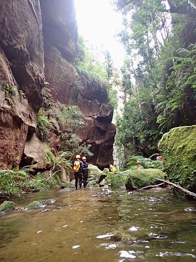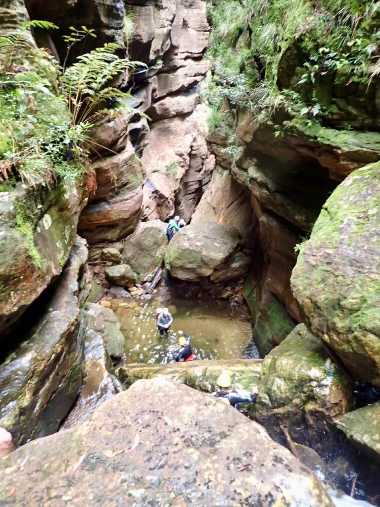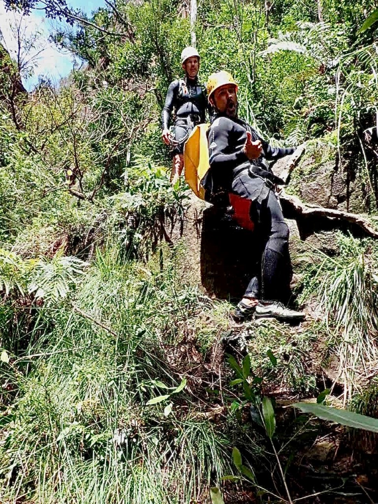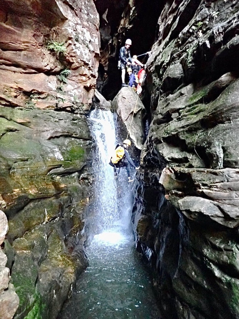 We woke up at 5.30am to meet our guides at Katoomba at 7am. They geared us up and drove us to the start of the trail. The abseiling commences pretty quickly, just 30 minutes into the hike. And from that point WOW. This is a canyon that just keeps on giving. At least 6 abseils of which one was too long for a single rope, meaning you have to land on a boulder, wedged between the narrow canyon walls, to rope up to a second rope. Many of them are through waterfalls. Just amazing.
