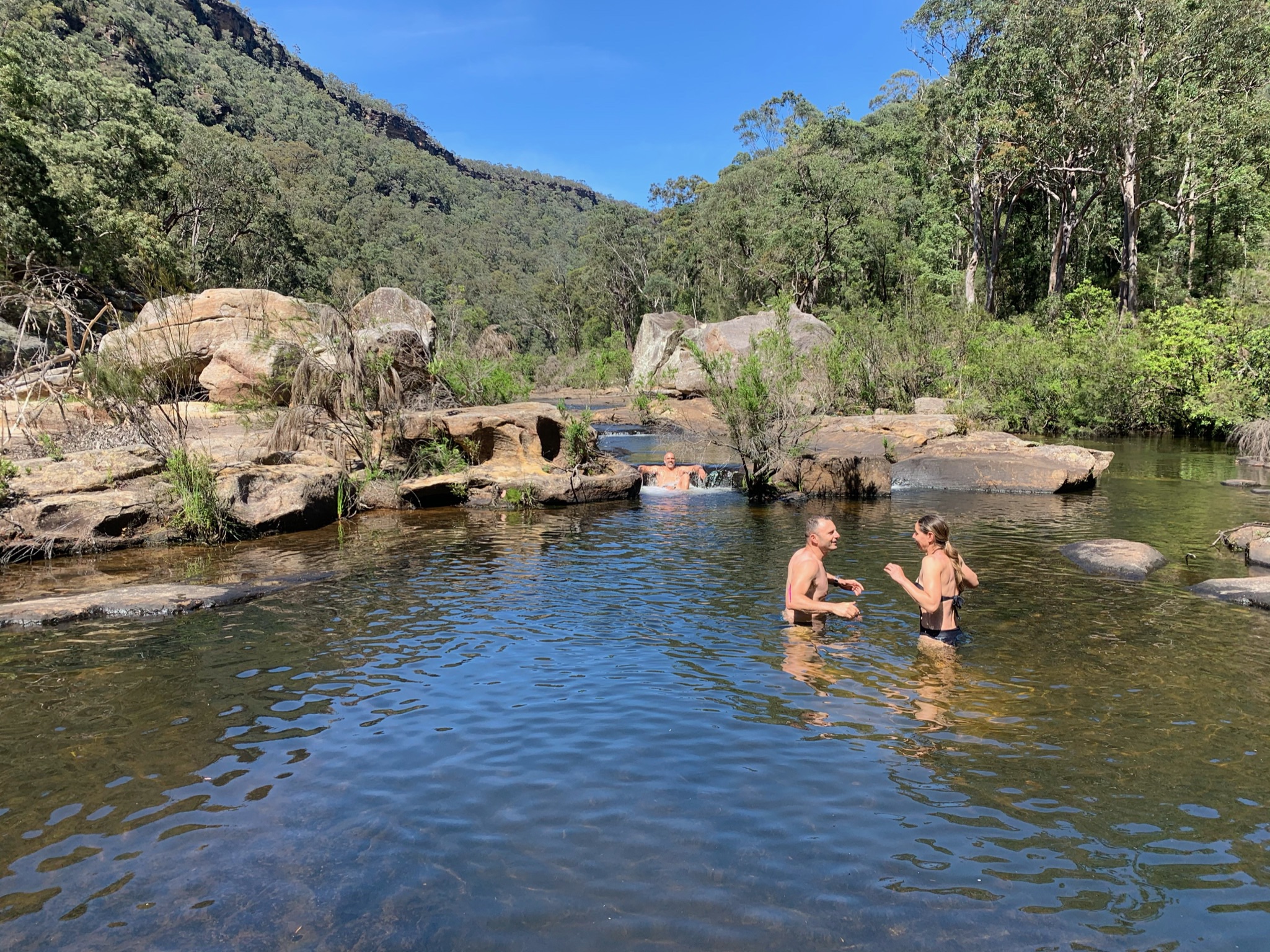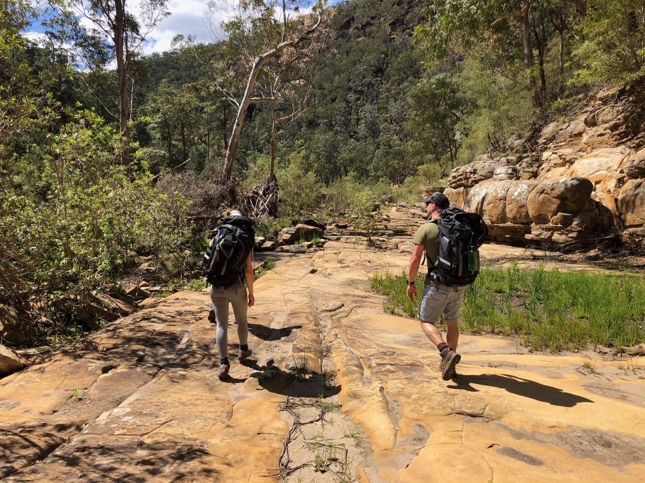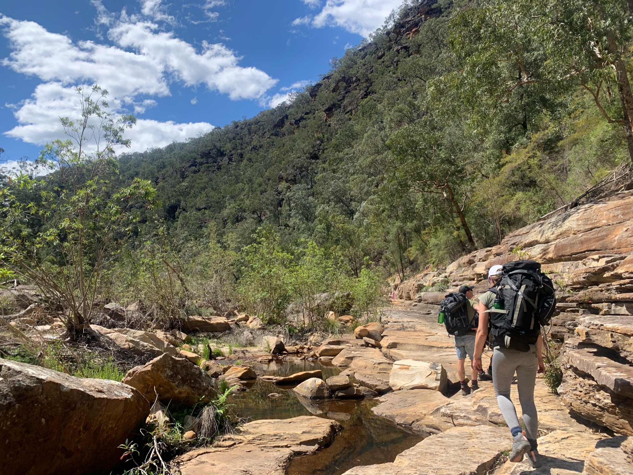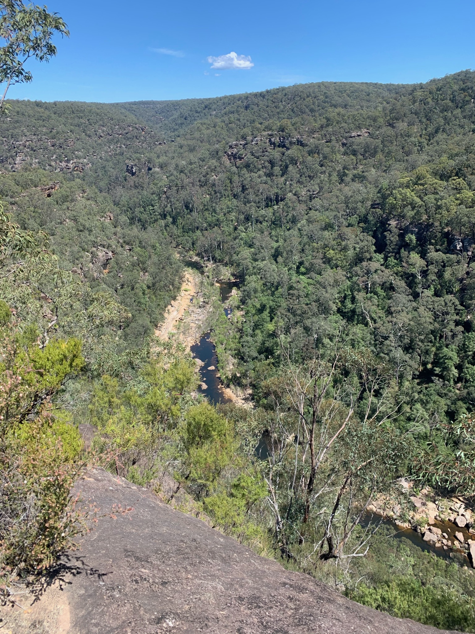 We tracked down to Kowmung via Roots Ridge. Hard going. 8 hours each way, but started early so had plenty of time. The sunrise over the Walls is spectacular, arrive to the trail head at least 30 minutes before sunrise. Getting down to Coal Seam Cave is easy. Gingra Trail has a few overgrown shrubs in large sections making it a hard to see the ridge at times for their thickness, navigating gets tricky at times. Dropping down to Roots is easy going in parts (upper sections) and incredibly thick and tall weeds in others (we spent over an hour cutting through weeds double our height at one point, very hard work). The general gradient is long but manageable, nothing too technical besides the crazy overgrowth. Ribbons are visible for first part but stop half way down Roots when the overgrowth kicks in. The river is incredible, clean, fast flowing (it was after rain) and so refreshing. Even though overgrown in most parts we managed to landscape a spot and enjoyed our swims in the super refreshing water. The route cannot be done without right gear for tackling overgrowth, but we loved it nonetheless. I wouldn’t recommend it to the inexperienced (in fact very dangerous) but for experienced ppl up for a gruelling challenge (and punishment).