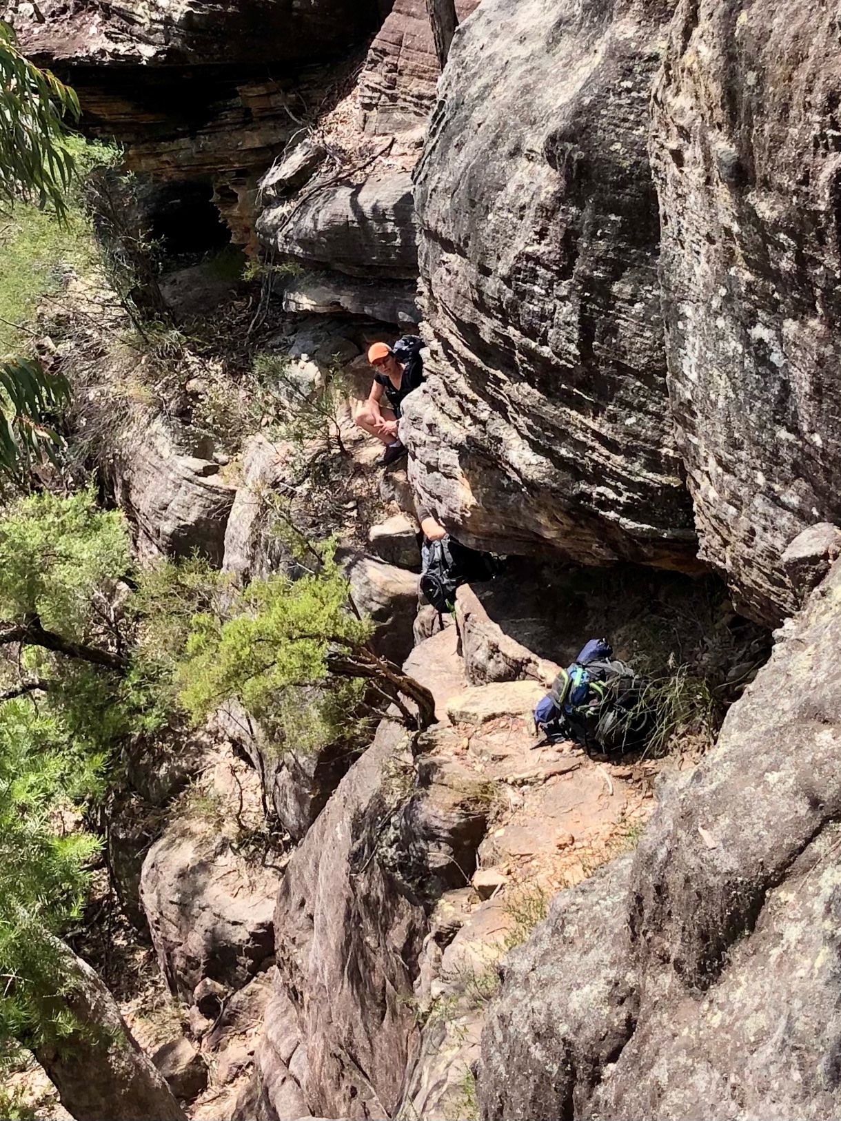 Kanangra Walls Plateau down to Kowmung River via Coals Seam Cave, Gingra Trail and Roots Ridge.